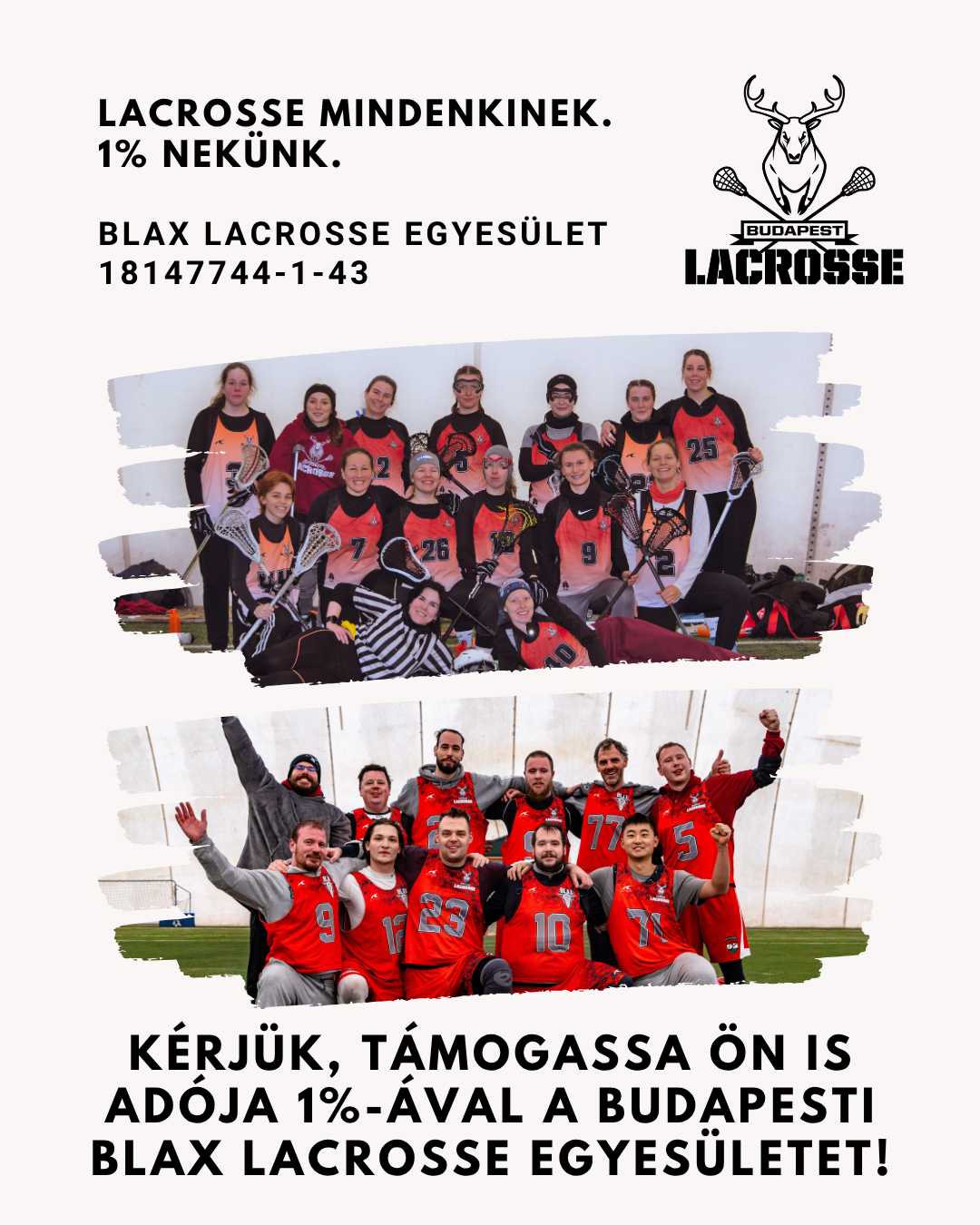 Minden támogatás segít nekünk abban, hogy még több fiatal számára biztosíthassuk a sportág élményét és fejlődését Kérjük, támogasd egyesületünket adód 1%-ával, hogy tovább fejlődhessen a magyar lacrosse!
